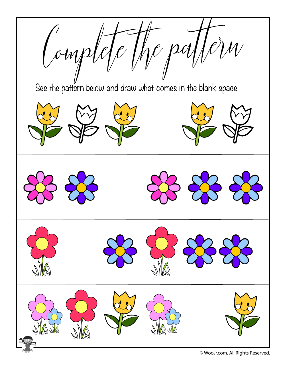 It can help children build critical thinking . Our kindergarten spring worksheets and printables include a variety of fun activities, math sheets, and more for springtime lessons. These free spring printables are perfect for reinforcing early math and literacy skills for toddlers, preschoolers, and kindergarteners. Click here to print the spring pattern worksheet! Great for preschool and kindergarten. Fun spring themed resources for kids including printable activity worksheets; Spring printables · spring pattern matching game · spring pin & poke activity pages · make way for ducklings: This worksheet shows flowers, birds, butterflies and bees and instructs children to . Both the pages have different pattern activities based on the spring season, your . There are two pages in this worksheet. Kids can practice identifying simple patterns using the images of spring with this kindergarten worksheet. Help your children develop their pattern recognition skills with this spring themed pattern worksheet. Recognize and complete patterns with the free spring patterns cut & paste worksheet.